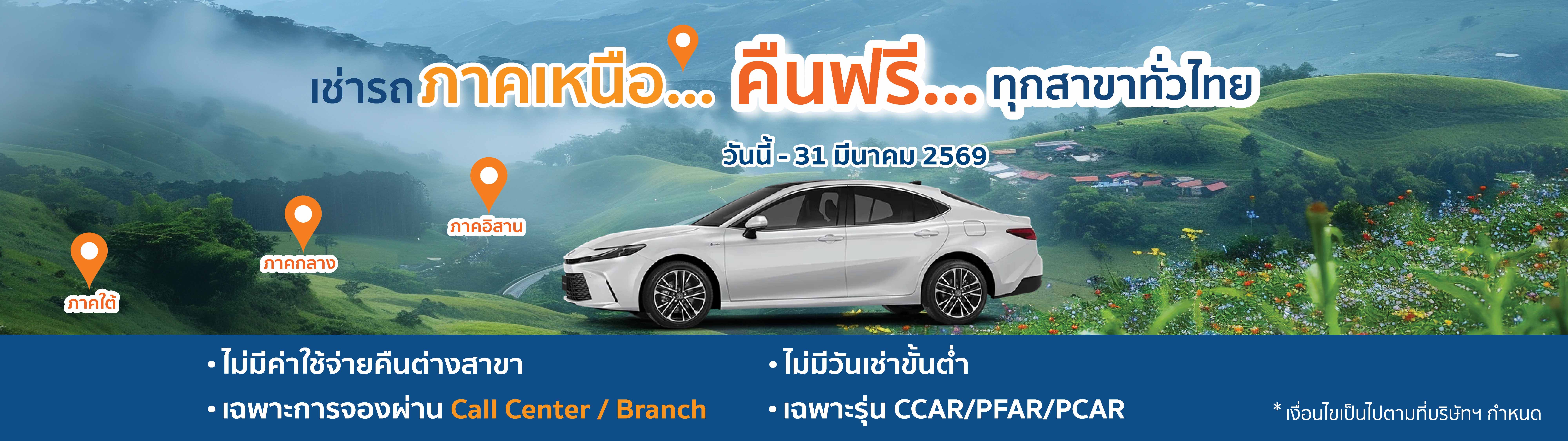 หมายเหตุ: โปรโมชันนี้ไม่สามารถคืนรถที่สาขาในภาคเหนือได้